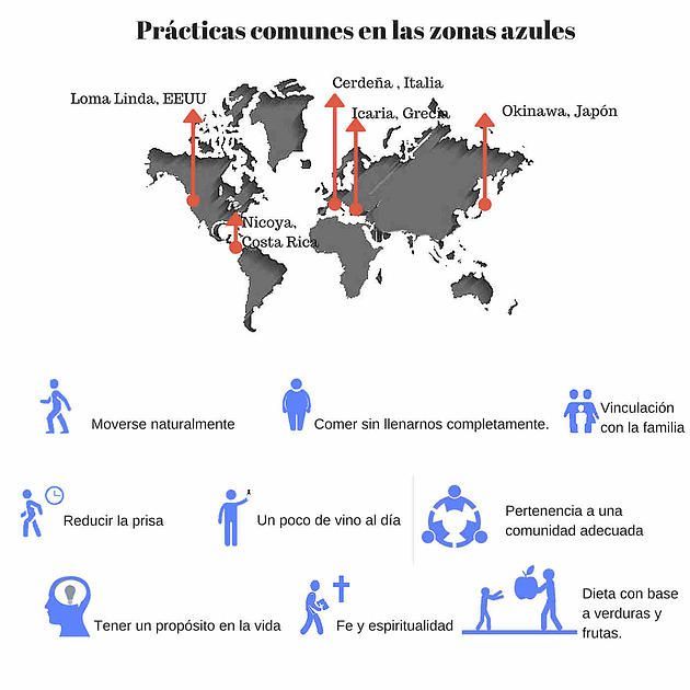 Es el estudio más grande que se ha hecho sobre las 5 zonas que más centenarios tienen en el mundo, se analizaron todos los posibles factores relacionados con la mayor o menor supervivencia de estos individuos. Se conocen como las 5 zonas azules del planeta y están situadas en Península Nicoya, Costa Rica, Isla de Icaria, Grecia, Loma Linda, California, y en la isla de Cerdeña, Italia. Y estos son los resultados y son así de contundentes.